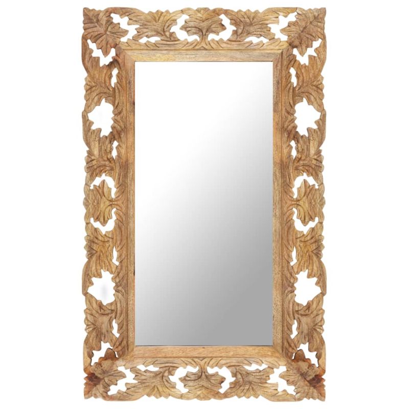 Ръчно резбовано огледало, кафяво, 80x50 см, мангово дърво масив