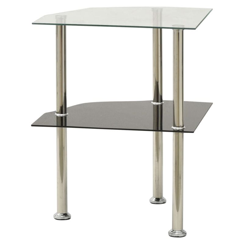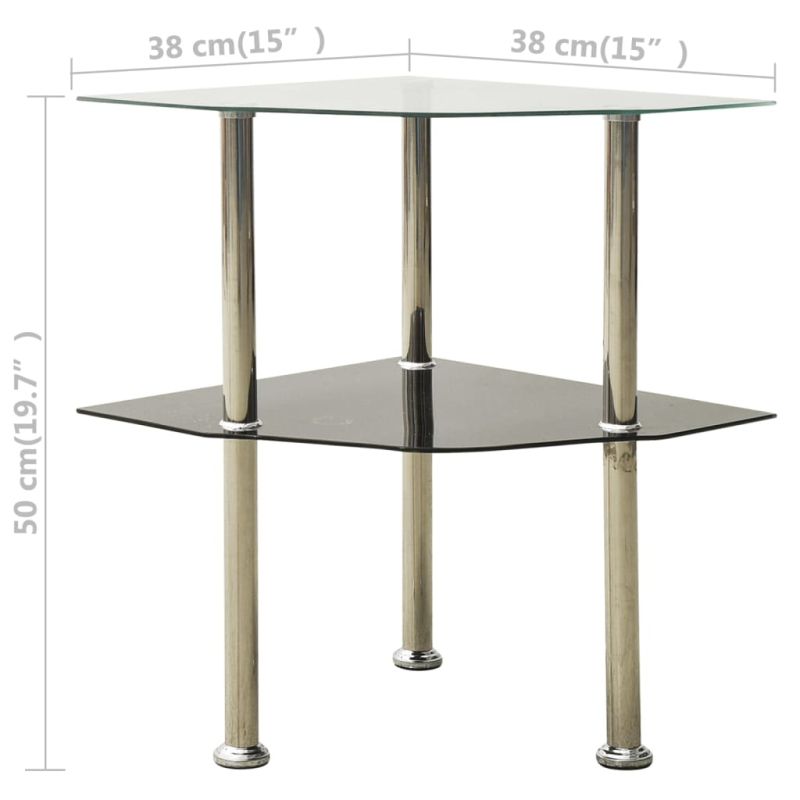 Странична маса с 2 рафта прозрачно и черно 38x38x50 см стъкло