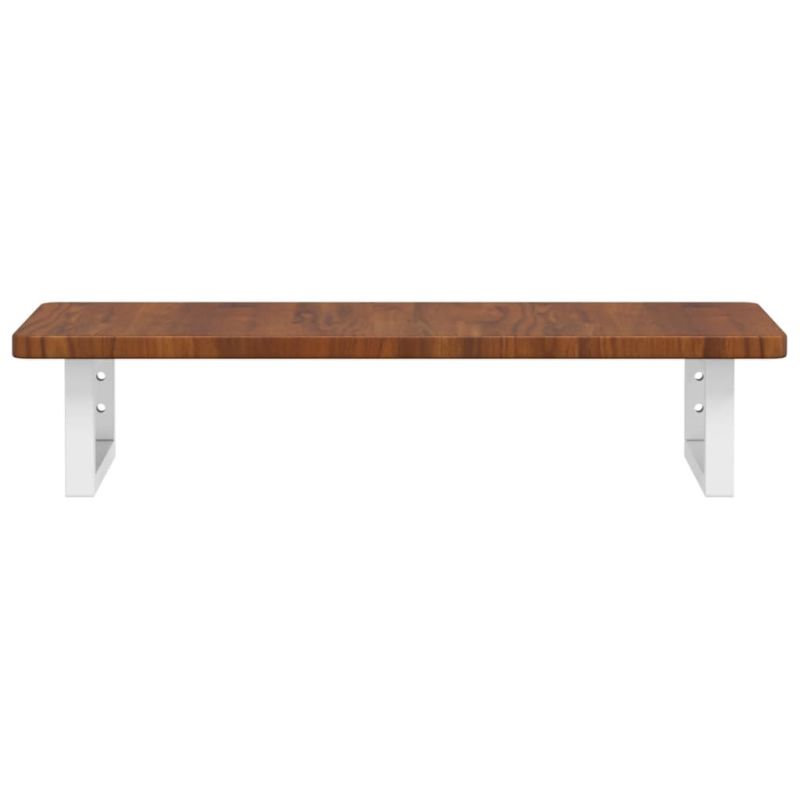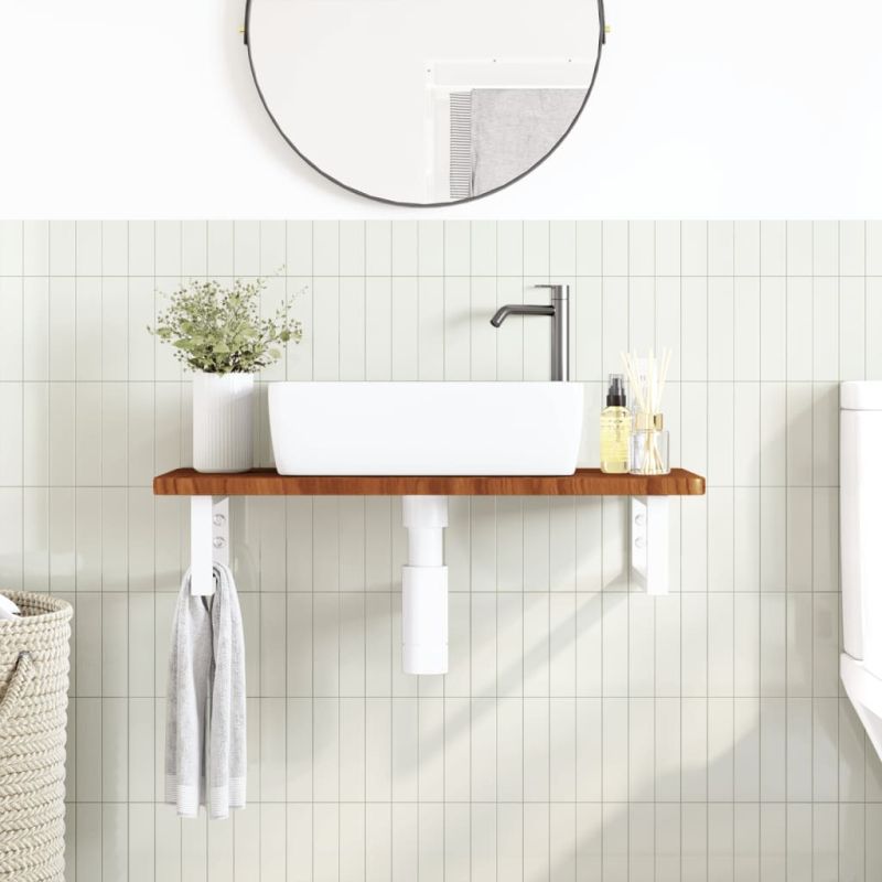 Стенният рафт за мивка се прикрепя сигурно към стената, осигурявайки елегантно и спестяващо място решение за вашата баня. Здрав и дълготраен: Този рафт за мивка е комбиниран със стоманена конструкция и плот от масивна дъбова дървесина, което го прави здрав, стабилен и дълготраен. Спестяване на място: Плаващият рафт за мивка има достатъчно място за съхранение на кремове и дребни предмети. Благодарение на правоъгълната форма можете да закачите кърпи или други неща на опората, за да спестите място. Лесен за използване: Плотът се доставя без дупки, за да позволи на мивката да се монтира отляво, отдясно или в центъра, в зависимост от изискванията на вашето помещение. Благодарение на предварително пробитите отвори в държача, той може лесно да се сглоби с плота и да се монтира на стената. Широки приложения: Благодарение на модерния си дизайн, осигурява допълнително пространство за различни видове бани. Добре е да се знае:Винтовете не са включени, можете да закупите винтовете отделно въз основа на информацията, предоставена по-долу. Прикрепване към стена: 2 бр дюбели M8 на скоба Дървен плот: 2 бр M5x18 винта (T=2) или 2 бр M5x20 винта (T=2,5/4 см) на скоба