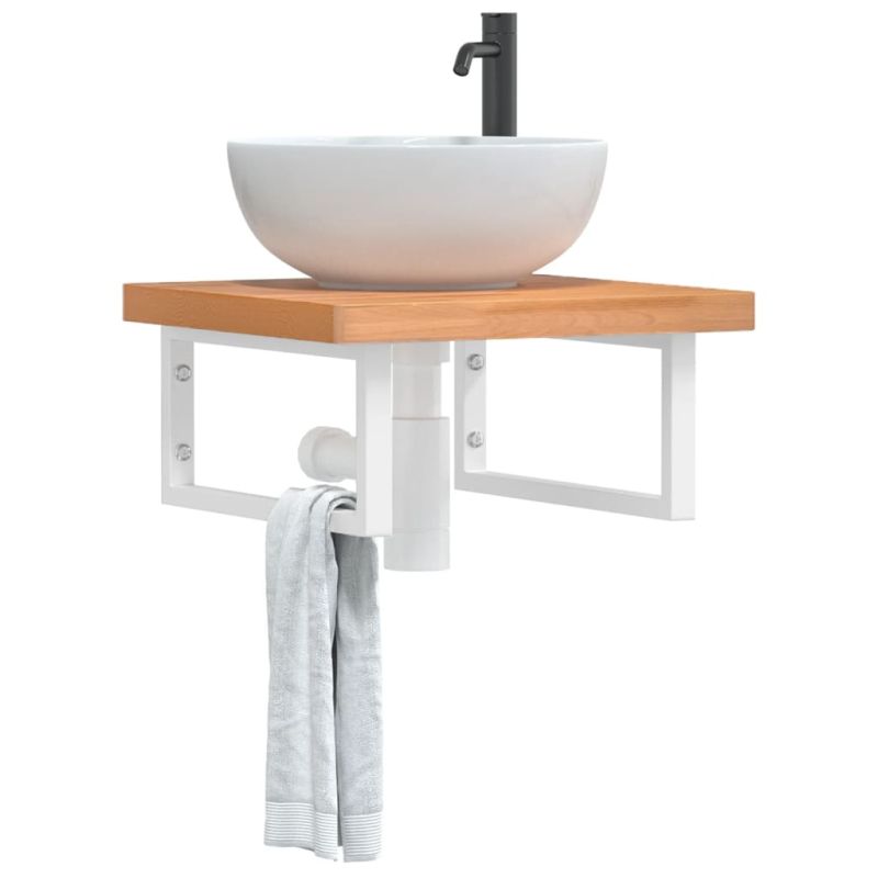 Стенен рафт за мивка, стомана и масивно дърво бук