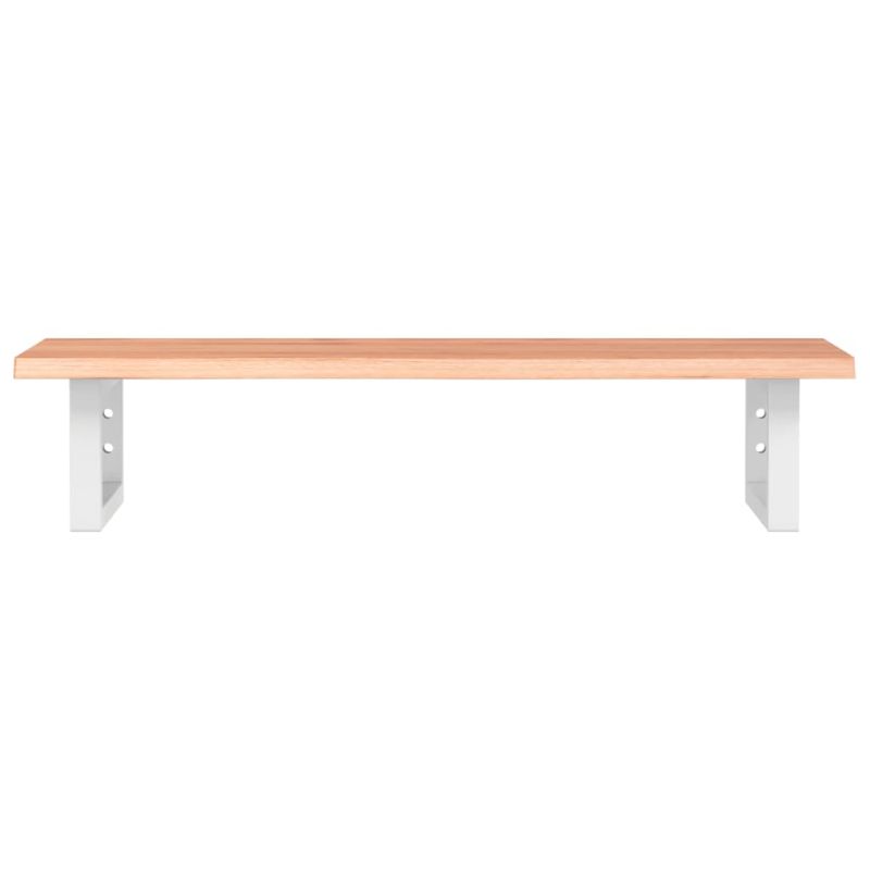 Стенният рафт за мивка се прикрепя сигурно към стената, осигурявайки елегантно и спестяващо място решение за вашата баня. Здрав и дълготраен: Този рафт за мивка е комбиниран със стоманена конструкция и плот от масивна дъбова дървесина, което го прави здрав, стабилен и дълготраен.Спестяване на място: Плаващият рафт за мивка има достатъчно място за съхранение на кремове и дребни предмети. Благодарение на правоъгълната форма можете да закачите кърпи или други неща на опората, за да спестите място.Лесен за използване: Плотът се доставя без дупки, за да позволи на мивката да се монтира отляво, отдясно или в центъра, в зависимост от изискванията на вашето помещение. Благодарение на предварително пробитите отвори в държача, той може лесно да се сглоби с плота и да се монтира на стената.Широки приложения: Благодарение на модерния си дизайн, осигурява допълнително пространство за различни видове бани. Добре е да се знае:Винтовете не са включени, можете да закупите винтовете отделно въз основа на информацията, предоставена по-долу.Прикрепване към стена: 2 бр дюбели M8 на скобаДървен плот: 2 бр M5x18 винта (T=2) или 2 бр M5x20 винта (T=2,5/4 см) на скобаКато естествен продукт, дървото може да има възли и несъвършенства, които ние запълваме с черни пълнежи, за да осигурим гладък външен вид.