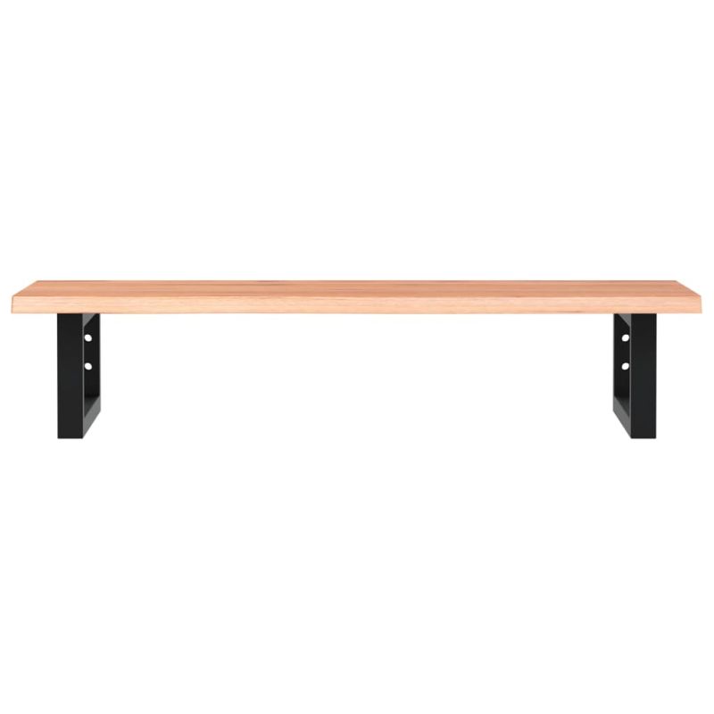 Стенният рафт за мивка се прикрепя сигурно към стената, осигурявайки елегантно и спестяващо място решение за вашата баня. Здрав и дълготраен: Този рафт за мивка е комбиниран със стоманена конструкция и плот от масивна дъбова дървесина, което го прави здрав, стабилен и дълготраен.Спестяване на място: Плаващият рафт за мивка има достатъчно място за съхранение на кремове и дребни предмети. Благодарение на правоъгълната форма можете да закачите кърпи или други неща на опората, за да спестите място.Лесен за използване: Плотът се доставя без дупки, за да позволи на мивката да се монтира отляво, отдясно или в центъра, в зависимост от изискванията на вашето помещение. Благодарение на предварително пробитите отвори в държача, той може лесно да се сглоби с плота и да се монтира на стената.Широки приложения: Благодарение на модерния си дизайн, осигурява допълнително пространство за различни видове бани. Добре е да се знае:Винтовете не са включени, можете да закупите винтовете отделно въз основа на информацията, предоставена по-долу.Прикрепване към стена: 2 бр дюбели M8 на скобаДървен плот: 2 бр M5x18 винта (T=2) или 2 бр M5x20 винта (T=2,5/4 см) на скобаКато естествен продукт, дървото може да има възли и несъвършенства, които ние запълваме с черни пълнежи, за да осигурим гладък външен вид.