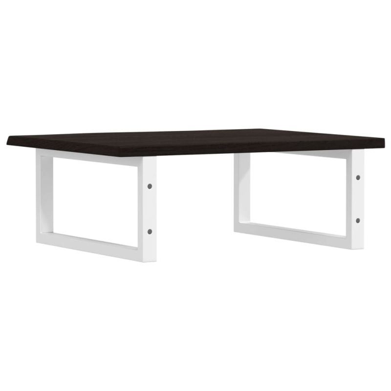 Стенният рафт за мивка се прикрепя сигурно към стената, осигурявайки елегантно и спестяващо място решение за вашата баня. Здрав и дълготраен: Този рафт за мивка е комбиниран със стоманена конструкция и плот от масивна дъбова дървесина, което го прави здрав, стабилен и дълготраен.Спестяване на място: Плаващият рафт за мивка има достатъчно място за съхранение на кремове и дребни предмети. Благодарение на правоъгълната форма можете да закачите кърпи или други неща на опората, за да спестите място.Лесен за използване: Плотът се доставя без дупки, за да позволи на мивката да се монтира отляво, отдясно или в центъра, в зависимост от изискванията на вашето помещение. Благодарение на предварително пробитите отвори в държача, той може лесно да се сглоби с плота и да се монтира на стената.Широки приложения: Благодарение на модерния си дизайн, осигурява допълнително пространство за различни видове бани. Добре е да се знае:Винтовете не са включени, можете да закупите винтовете отделно въз основа на информацията, предоставена по-долу.Прикрепване към стена: 2 бр дюбели M8 на скобаДървен плот: 2 бр M5x18 винта (T=2) или 2 бр M5x20 винта (T=2,5/4 см) на скобаКато естествен продукт, дървото може да има възли и несъвършенства, които ние запълваме с черни пълнежи, за да осигурим гладък външен вид.