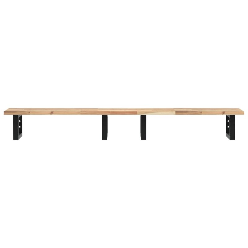 Стенният рафт за мивка се прикрепя сигурно към стената, осигурявайки елегантно и спестяващо място решение за вашата баня. Здрав и дълготраен: Този рафт за мивка е комбиниран със стоманена конструкция и плот от масивна акациева дървесина, което го прави здрав, стабилен и дълготраен.Спестяване на място: Плаващият рафт за мивка има достатъчно място за съхранение на кремове и дребни предмети. Благодарение на правоъгълната форма можете да закачите кърпи или други неща на опората, за да спестите място.Лесен за използване: Плотът се доставя без дупки, за да позволи на мивката да се монтира отляво, отдясно или в центъра, в зависимост от изискванията на вашето помещение. Благодарение на предварително пробитите отвори в държача, той може лесно да се сглоби с плота и да се монтира на стената.Широки приложения: Благодарение на модерния си дизайн, осигурява допълнително пространство за различни видове бани. Добре е да се знае:Винтовете не са включени, можете да закупите винтовете отделно въз основа на информацията, предоставена по-долу.Прикрепване към стена: 2 бр дюбели M8 на скобаДървен плот: 2 бр M5x18 винта (T=2) или 2 бр M5x20 винта (T=2,5/4 см) на скоба