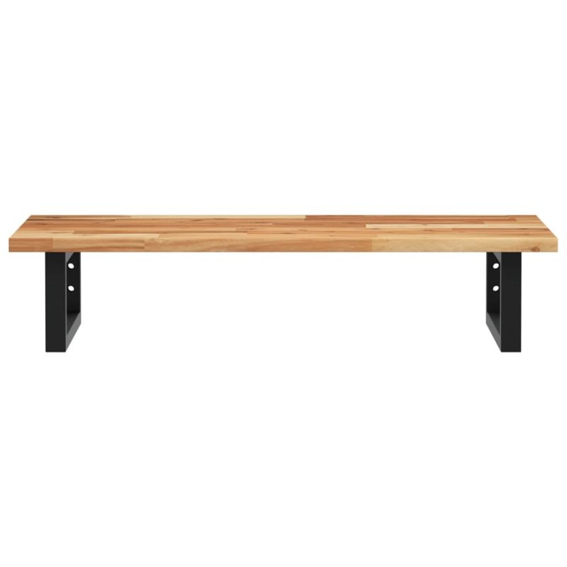 Стенният рафт за мивка се прикрепя сигурно към стената, осигурявайки елегантно и спестяващо място решение за вашата баня. Здрав и дълготраен: Този рафт за мивка е комбиниран със стоманена конструкция и плот от масивна акациева дървесина, което го прави здрав, стабилен и дълготраен.Спестяване на място: Плаващият рафт за мивка има достатъчно място за съхранение на кремове и дребни предмети. Благодарение на правоъгълната форма можете да закачите кърпи или други неща на опората, за да спестите място.Лесен за използване: Плотът се доставя без дупки, за да позволи на мивката да се монтира отляво, отдясно или в центъра, в зависимост от изискванията на вашето помещение. Благодарение на предварително пробитите отвори в държача, той може лесно да се сглоби с плота и да се монтира на стената.Широки приложения: Благодарение на модерния си дизайн, осигурява допълнително пространство за различни видове бани. Добре е да се знае:Винтовете не са включени, можете да закупите винтовете отделно въз основа на информацията, предоставена по-долу.Прикрепване към стена: 2 бр дюбели M8 на скобаДървен плот: 2 бр M5x18 винта (T=2) или 2 бр M5x20 винта (T=2,5/4 см) на скоба