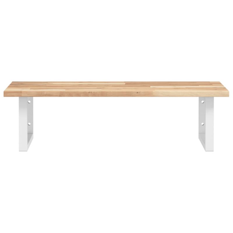 Стенният рафт за мивка се прикрепя сигурно към стената, осигурявайки елегантно и спестяващо място решение за вашата баня. Здрав и дълготраен: Този рафт за мивка е комбиниран със стоманена конструкция и плот от масивна акациева дървесина, което го прави здрав, стабилен и дълготраен.Спестяване на място: Плаващият рафт за мивка има достатъчно място за съхранение на кремове и дребни предмети. Благодарение на правоъгълната форма можете да закачите кърпи или други неща на опората, за да спестите място.Лесен за използване: Плотът се доставя без дупки, за да позволи на мивката да се монтира отляво, отдясно или в центъра, в зависимост от изискванията на вашето помещение. Благодарение на предварително пробитите отвори в държача, той може лесно да се сглоби с плота и да се монтира на стената.Широки приложения: Благодарение на модерния си дизайн, осигурява допълнително пространство за различни видове бани. Добре е да се знае:Винтовете не са включени, можете да закупите винтовете отделно въз основа на информацията, предоставена по-долу.Прикрепване към стена: 2 бр дюбели M8 на скобаДървен плот: 2 бр M5x18 винта (T=2) или 2 бр M5x20 винта (T=2,5/4 см) на скоба