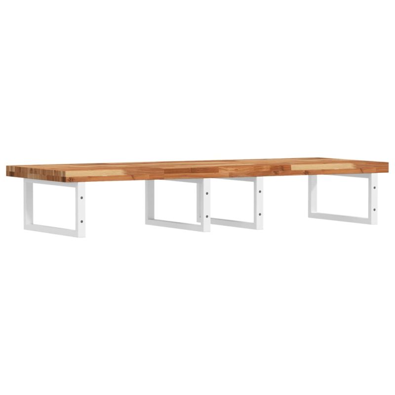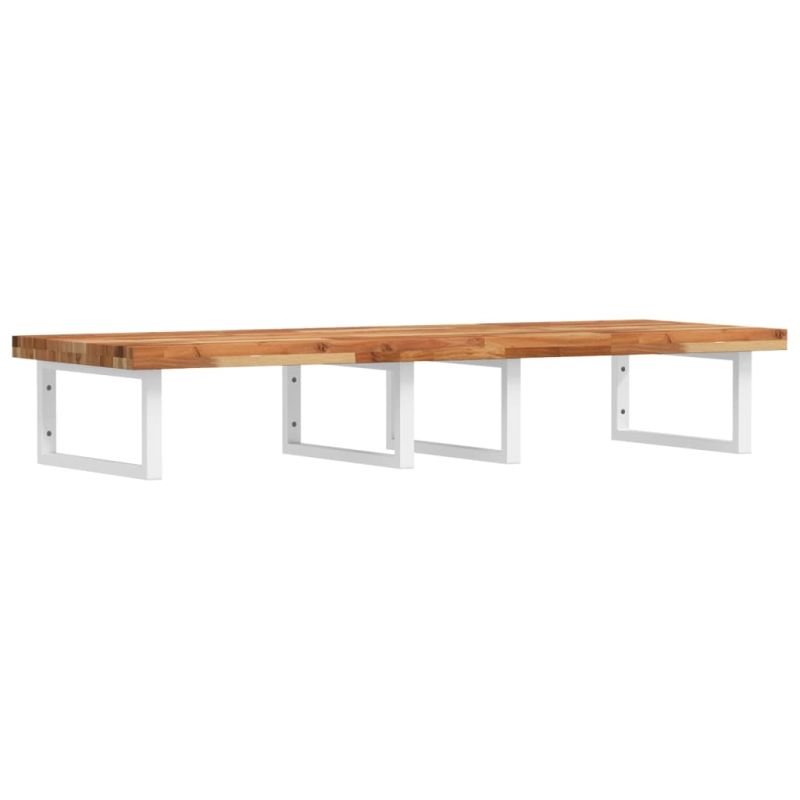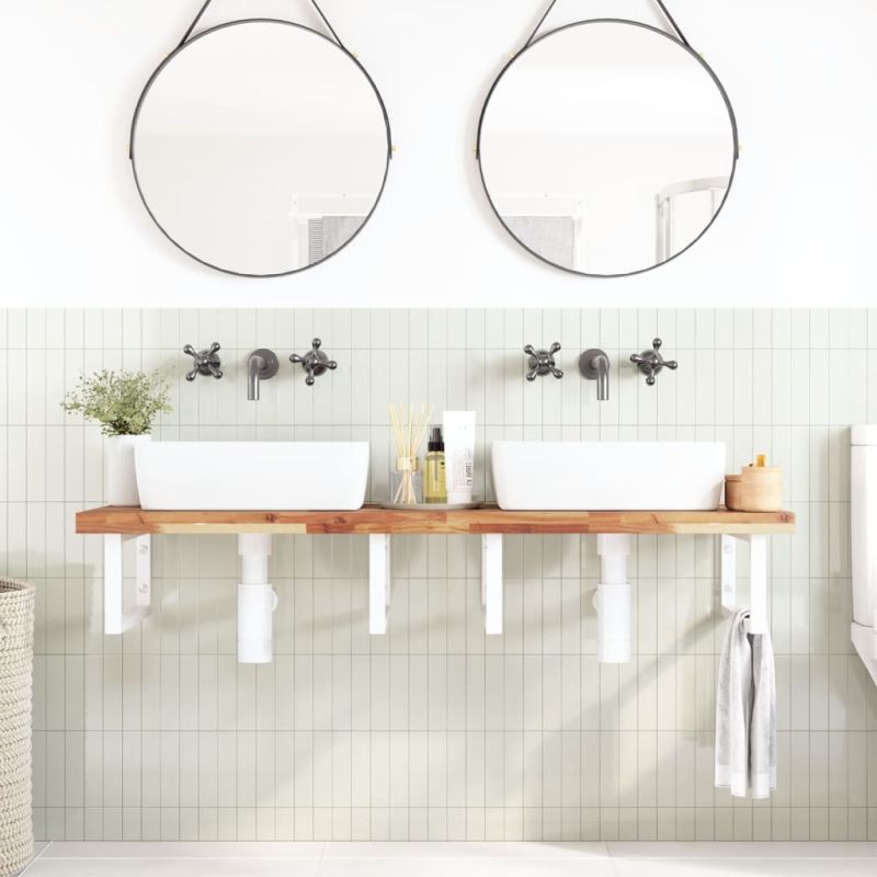 Стенният рафт за мивка се прикрепя сигурно към стената, осигурявайки елегантно и спестяващо място решение за вашата баня. Здрав и дълготраен: Този рафт за мивка е комбиниран със стоманена конструкция и плот от масивна акациева дървесина, което го прави здрав, стабилен и дълготраен.Спестяване на място: Плаващият рафт за мивка има достатъчно място за съхранение на кремове и дребни предмети. Благодарение на правоъгълната форма можете да закачите кърпи или други неща на опората, за да спестите място.Лесен за използване: Плотът се доставя без дупки, за да позволи на мивката да се монтира отляво, отдясно или в центъра, в зависимост от изискванията на вашето помещение. Благодарение на предварително пробитите отвори в държача, той може лесно да се сглоби с плота и да се монтира на стената.Широки приложения: Благодарение на модерния си дизайн, осигурява допълнително пространство за различни видове бани. Добре е да се знае:Винтовете не са включени, можете да закупите винтовете отделно въз основа на информацията, предоставена по-долу.Прикрепване към стена: 2 бр дюбели M8 на скобаДървен плот: 2 бр M5x18 винта (T=2) или 2 бр M5x20 винта (T=2,5/4 см) на скоба