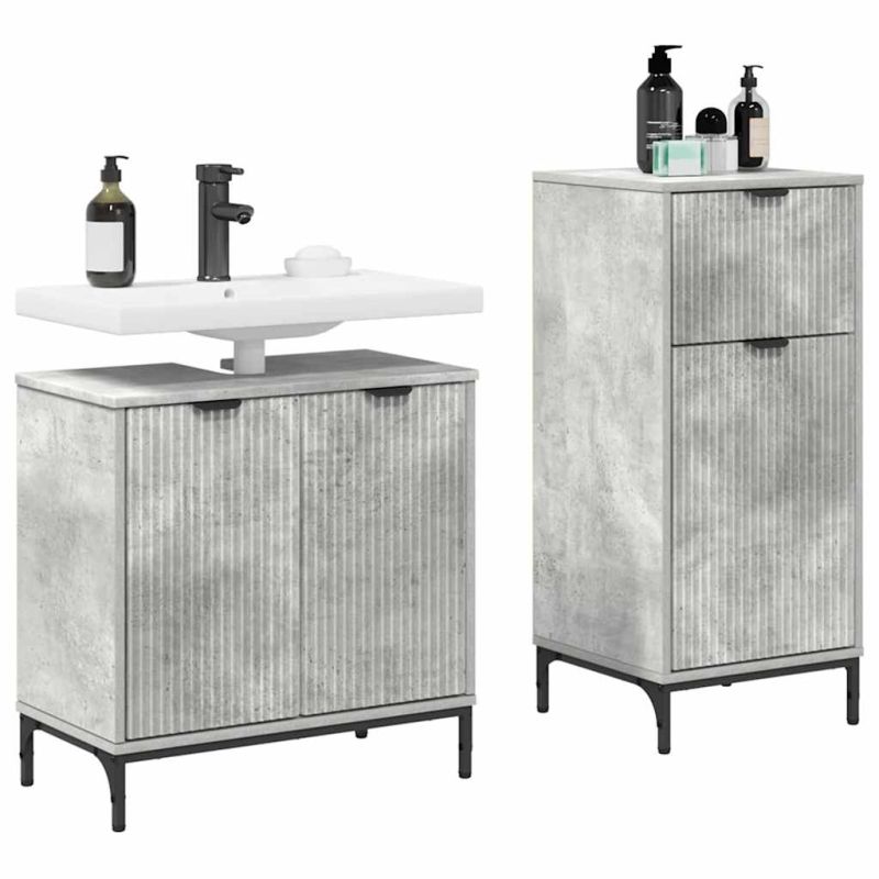 Комплект мебели за баня с чекмедже с рафт 2 pcs Циментено сиво