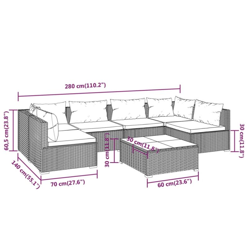 Отпуснете се и се насладете със семейството и приятелите си във вашето открито пространство с този полиратанов градински лаундж комплект с възглавници! Moдулен дизайн: Този дизайн дава възможност да разположите креслото във всякаква аранжировка или да го комбинирате с други модулни сегменти, за да удовлетворите нуждите си!Първокласен материал: Лаундж комплектът за вътрешен двор е проектиран от водоустойчив PE ратан, което го прави издръжлив и подходящ за ежедневна употреба на открито.Здрава рамка: Този лаундж комплект за открито се отличава със здрава прахово боядисана стоманена рамка и пластмасови хромирани крачета и е много издръжлив. Благодарение на олекотената си конструкция, той е лесен за преместване.Удобни възглавници: Изработени от плат, дебело подплатените и подвижни възглавници са меки на допир и доставят повече комфорт. Забележка:Забележка: За да удължите живота на вашите градински мебели, ви препоръчваме да ги защитите с водоустойчиво покривало.