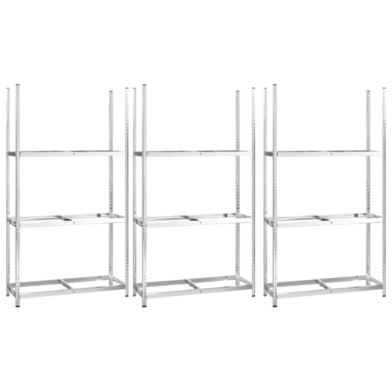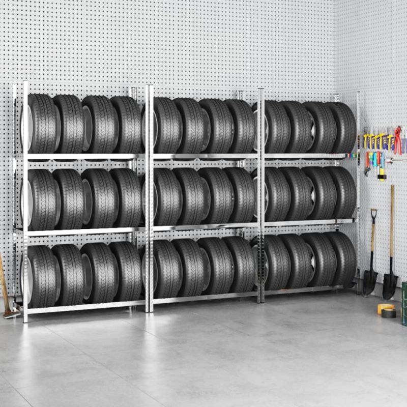 Стелажи за гуми с 3 рафта 3 бр сребристи 110x40x200 см стомана