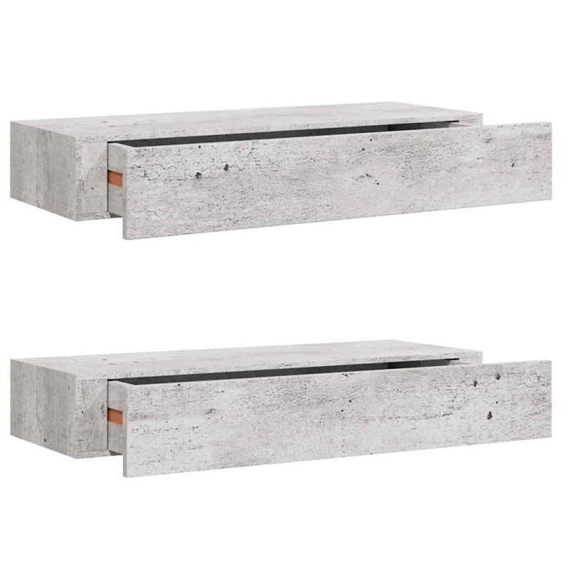 Стенни рафтове с чекмеджета 2 бр бетонно сив 60x23,5x10 см МДФ