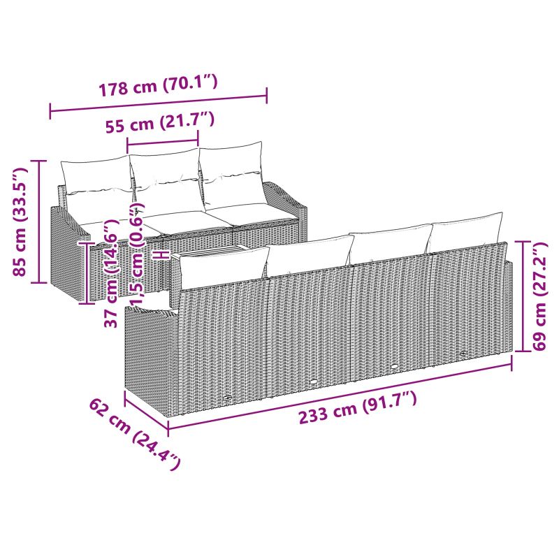 Градински Софа Комплект 8 pcs Сив и тъмен син полиратан