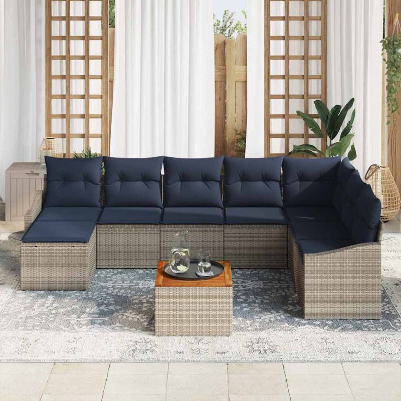 Градински Софа Комплект 9 pcs Сив и тъмен син полиратан
