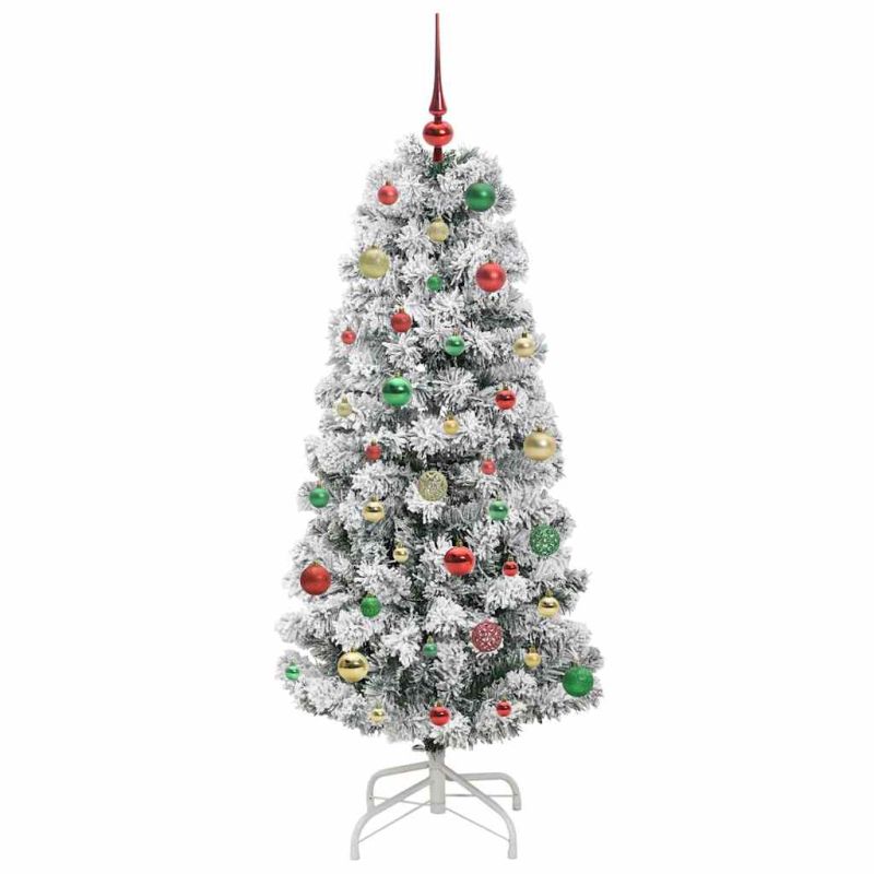 Начало Дом и градина Декор Сезонни и празнични декорации Празнични орнаменти Изкуствено коледно дърво с хингед с поставка Зелен и бял 150 cm