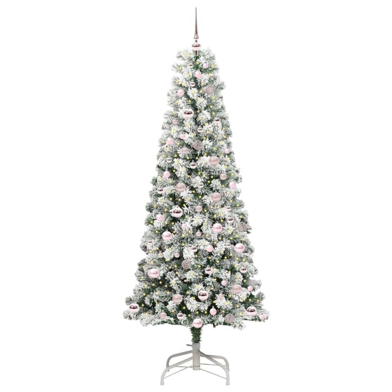 Изкуствено коледно дърво с хингед с поставка Зелен и бял 210 cm