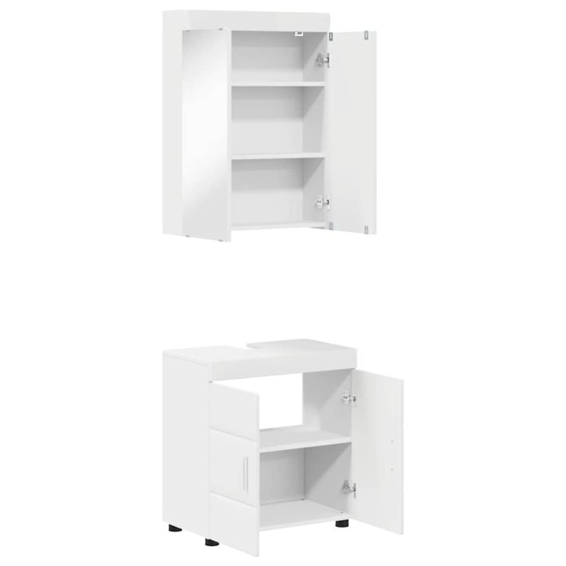 Този модерен комплект шкафове за баня придава стил и изчистен вид на вашата баня. Проектиран с мисъл за функция и стил, той е изработен от инженерна дървесина, което го прави здраво и издръжливо решение за съхранение. Идеален за всяка обстановка, комплектът предлага достатъчно място за основните неща. Гладката текстура и матовото покритие добавят нотка елегантност, а дизайнът му е подходящ за различни размери и стилове на баня. Инженерна дървесина Изработен от инженерна дървесина, този комплект предлага дълготрайност и стабилност. Гладката текстура му придава стилен вид и предлага надеждна структура. Подходяща е за запазване на формата си през време, осигурявайки стабилно решение за съхранение. Спестяващо място за съхранение Просторните отделения улесняват организирането на бански вещи, като кърпи и тоалетни принадлежности. Това място е идеално за бърз и удобен достъп до необходимото, осигурявайки чиста среда. Матов финал С изисквано матово покритие, шкафовете придават елегантен и модерен вид. Финишът подобрява съвременния дизайн, съчетавайки се с различни декори, добавяйки стилни акценти, без да уронва другите елементи на интериора. Лесна поддръжка Поддръжката на шкафовете е лесна - просто ги избърсвате с влажна кърпа, за да поддържате яркото им излъчване. Тази рутинна поддръжка гарантира, че шкафовете ще изглеждат добре с времето. Изисква сглобяване Комплектът идва с нужда от сглобяване - два души и отвертка са необходими. Този лесен процес е полезен за опознаване на конструкцията на шкафовете.