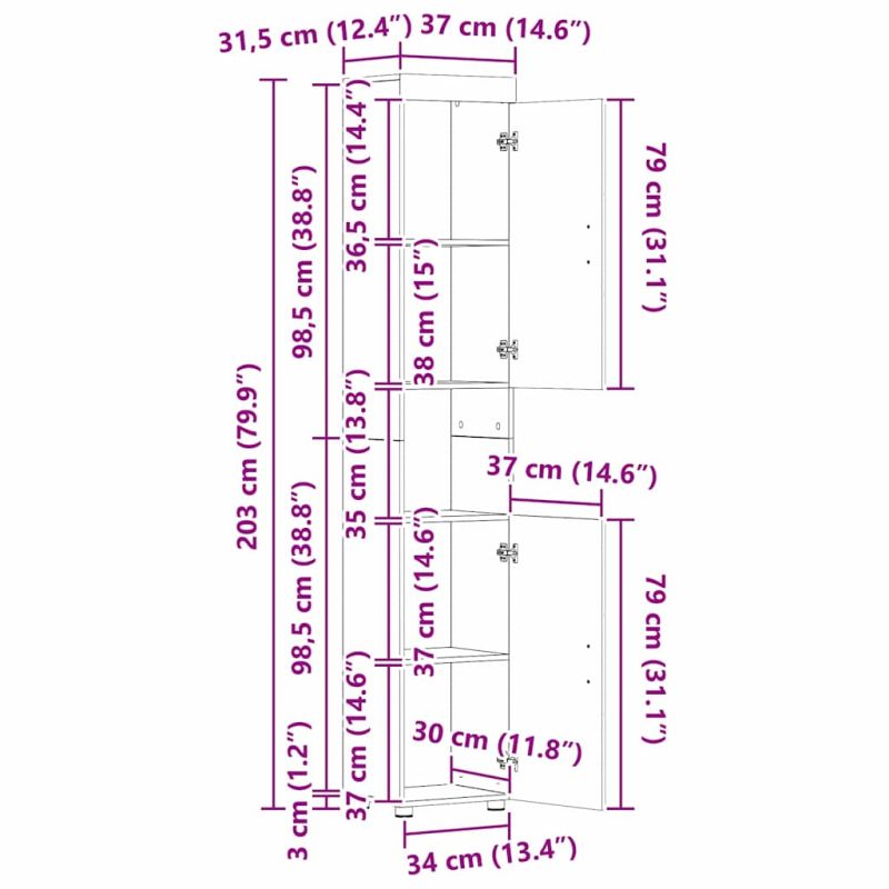 Този модерен комплект шкафове за баня придава стил и изчистен вид на вашата баня. Проектиран с мисъл за функция и стил, той е изработен от инженерна дървесина, което го прави здраво и издръжливо решение за съхранение. Идеален за всяка обстановка, комплектът предлага достатъчно място за основните неща. Гладката текстура и матовото покритие добавят нотка елегантност, а дизайнът му е подходящ за различни размери и стилове на баня. Инженерна дървесина Изработен от инженерна дървесина, този комплект предлага дълготрайност и стабилност. Гладката текстура му придава стилен вид и предлага надеждна структура. Подходяща е за запазване на формата си през време, осигурявайки стабилно решение за съхранение. Спестяващо място за съхранение Просторните отделения улесняват организирането на бански вещи, като кърпи и тоалетни принадлежности. Това място е идеално за бърз и удобен достъп до необходимото, осигурявайки чиста среда. Матов финал С изисквано матово покритие, шкафовете придават елегантен и модерен вид. Финишът подобрява съвременния дизайн, съчетавайки се с различни декори, добавяйки стилни акценти, без да уронва другите елементи на интериора. Лесна поддръжка Поддръжката на шкафовете е лесна - просто ги избърсвате с влажна кърпа, за да поддържате яркото им излъчване. Тази рутинна поддръжка гарантира, че шкафовете ще изглеждат добре с времето. Изисква сглобяване Комплектът идва с нужда от сглобяване - два души и отвертка са необходими. Този лесен процес е полезен за опознаване на конструкцията на шкафовете.