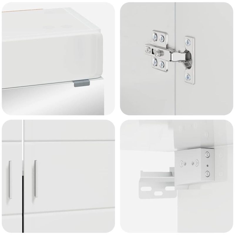 Този модерен комплект шкафове за баня придава стил и изчистен вид на вашата баня. Проектиран с мисъл за функция и стил, той е изработен от инженерна дървесина, което го прави здраво и издръжливо решение за съхранение. Идеален за всяка обстановка, комплектът предлага достатъчно място за основните неща. Гладката текстура и матовото покритие добавят нотка елегантност, а дизайнът му е подходящ за различни размери и стилове на баня. Инженерна дървесина Изработен от инженерна дървесина, този комплект предлага дълготрайност и стабилност. Гладката текстура му придава стилен вид и предлага надеждна структура. Подходяща е за запазване на формата си през време, осигурявайки стабилно решение за съхранение. Спестяващо място за съхранение Просторните отделения улесняват организирането на бански вещи, като кърпи и тоалетни принадлежности. Това място е идеално за бърз и удобен достъп до необходимото, осигурявайки чиста среда. Матов финал С изисквано матово покритие, шкафовете придават елегантен и модерен вид. Финишът подобрява съвременния дизайн, съчетавайки се с различни декори, добавяйки стилни акценти, без да уронва другите елементи на интериора. Лесна поддръжка Поддръжката на шкафовете е лесна - просто ги избърсвате с влажна кърпа, за да поддържате яркото им излъчване. Тази рутинна поддръжка гарантира, че шкафовете ще изглеждат добре с времето. Изисква сглобяване Комплектът идва с нужда от сглобяване - два души и отвертка са необходими. Този лесен процес е полезен за опознаване на конструкцията на шкафовете.