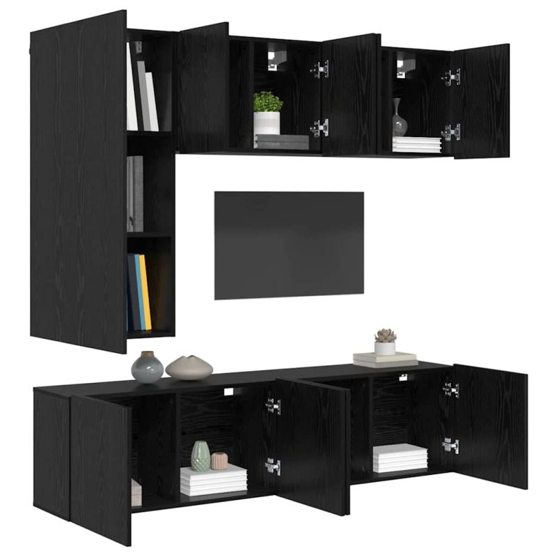 Телевизионен стенен шкаф 5 pcs Черния дъб Инженерно дърво
