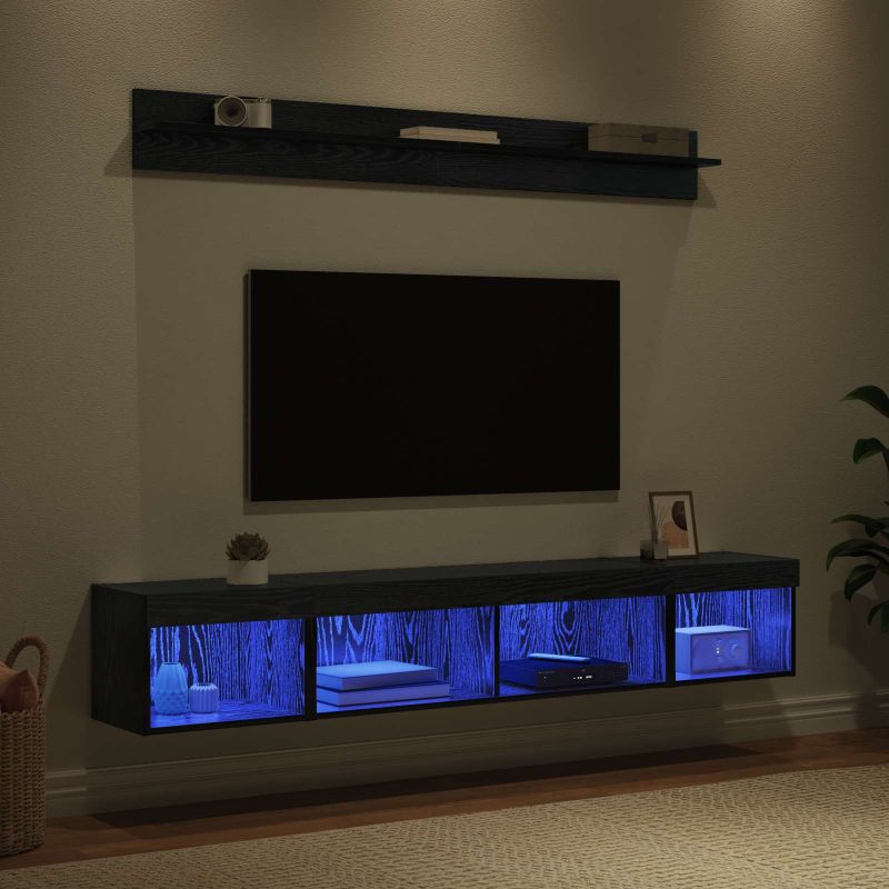 Тази стена за телевизор съчетава практичност и стил. Със своята елегантна форма и достатъчно рафтове, тя е идеална да подреди вашите медийни устройства. Модерният дизайн с чисти линии и минималистична визия я прави подходяща за всяка малка стая. Състав от инженерна дървесина: Нашата стена за телевизор е изработена от инженерна дървесина, която предлага модерен вид за дълго. Този материал е подбран заради стабилността си и устойчивост на деформация, а гладкото покритие приляга на всякакви интериори. Универсални LED ленти: LED лентите подсилват атмосферата, работейки на USB за икономия на енергия. Можете да регулирате яркостта, за да съответства на настроението ви. Функционалност на рафтовете: Шкафът има рафтове за различни нужди, като позволява организиране на техника, декор или книги. Може да се персонализира според вашите предпочитания. Монтаж на стена: Проектирана за монтаж на стена, единицата спестява пространство и осигурява чист вид. Лесна е за сглобяване с помощта на отвертка и двама души. Практичност и поддръжка: Стената изисква минимална поддръжка и остава чиста с редовно прахосване. Инженерната дървесина не запечатва бъркотия, което е удобно. Моля, обърнете внимание, че трябва да използвате само сертифициран вход DC 5V. По-високото напрежение може да доведе до прегряване и да повреди устройството, както и до потенциален риск от прегряване и пожар. Не свързвайте този продукт към захранване, различно от описаното в ръководството, на табелката с името или изрично препоръчано от vidaXL. Този уред не трябва да се използва от деца под 15 години, както и от лица с намалени физически, сетивни или умствени способности или с липса на опит и познания относно използването на електронни уреди. Електричеството е опасно. Повредите и неправилният монтаж, употреба или промяна (подмяна на отделни компоненти) могат да доведат до повреда на уреда , което да доведе до токов удар и опасност за потребителя. Не използвайте този продукт във взривоопасна атмосфера, като например при наличие на запалими течности, газове и прах, или при температура над 50 градуса по Целзий или повече. Не включвайте продукта, ако свързващият кабел или захранването са видимо повредени. Ако външният гъвкав кабел или захранващ кабел на това осветително тяло е повреден, той трябва да бъде заменен изключително от производителя или негов сервизен агент, или от подобно квалифицирано лице, за да се избегне опасност. Изключете захранването по време на монтажа и поддръжката. Уверете се, че крушките са изстинали. Светлинният източник на това осветително тяло не може да се заменя; когато светлинният източник достигне края на експлоатационния си срок, цялото осветително тяло трябва да се замени. Само за употреба на закрито, не използвайте този продукт на открито. Не използвайте този артикул, ако някой от компонентите е счупен, скъсан или липсва. Този продукт се захранва с DC 5V, но сертифицираният 5V USB източник на захранване не е включен в комплекта. По-високото напрежение може да доведе до прегряване на устройството и да доведе до повреда на устройството и потенциален риск от прегряване и пожар.