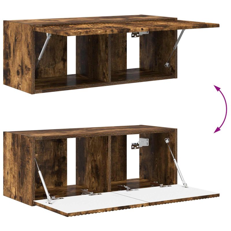 Тази колекция от ТВ шкафове е готино модерно решение за съхранение, което се вписва перфектно във всяка всекидневна, с чисти линии и минималистичен вид. Направен е от инженерна дървесина и предлага стил, докато организирате всичко, от което имате нужда за развлечения. Стенната конфигурация освобождава пода, което го прави идеален за компактни пространства. Конструкция от инженерна дървесина Този шкаф е направен от здрава инженерна дървесина – издръжлив и стилен. Материалът е устойчив на износване и изглежда добре дълго време. Гладката повърхност допълва модерната естетика на вашата всекидневна. Много място за съхранение Шкафът предлага простор за вашите устройства, DVD-та и декорации. С отделенията, получавате организиран и красив хол, а лъскавите врати скриват каквото не искате да се вижда. Врати с 90° панти Вратите с 90° позволяват супер лесен достъп до нещата ви. Те се отварят широко, така че всичко е подръка и поддържат комплектът да изглежда добре. Стенен монтаж Монтирането на шкафа на стената му дава елегантен вид. Освобождава място на пода и е специално за малки апартаменти. Сигурната инсталация осигурява, че той остава здраво на място и можете да го нагаждате на височината, която искате. Лесна поддръжка Поддържането е лесно с нормално почистване. Само избърсвайте с влажна кърпа, за да остане свеж и блестящ. Избягвайте агресивни почистващи средства, за да запазите блясъка му.