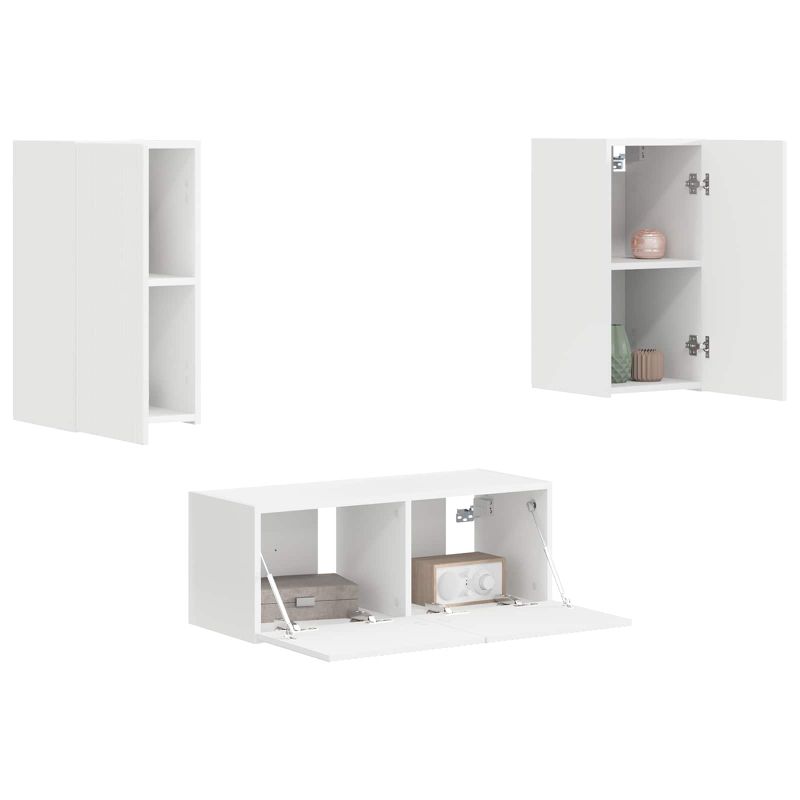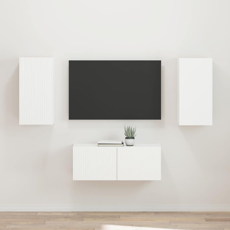 Комплект ТВ шкаф Монтиране на стена 2 pcs Бяло Инженерно дърво
