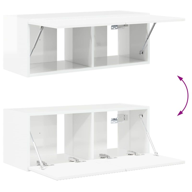 Комплект ТВ шкаф 2 pcs Лъскаво бяло Инженерно дърво