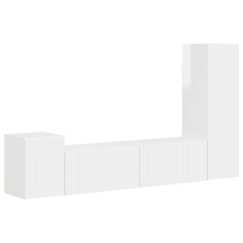 Начало Дом и градина Мебели Секции и поставки за телевизори Комплект ТВ шкаф 4 pcs Лъскаво бяло Инженерно дърво