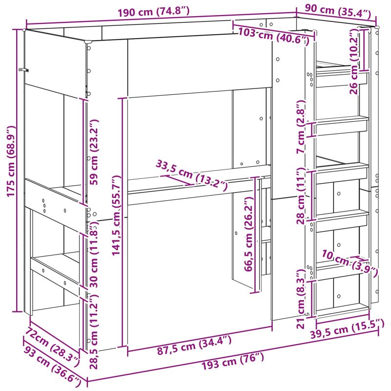 Начало Мебели Легла и аксесоари Легла и рамки за легла Рамка за двуетажно легло с бюро Дъб 90 x 190 cm Инженерно дърво