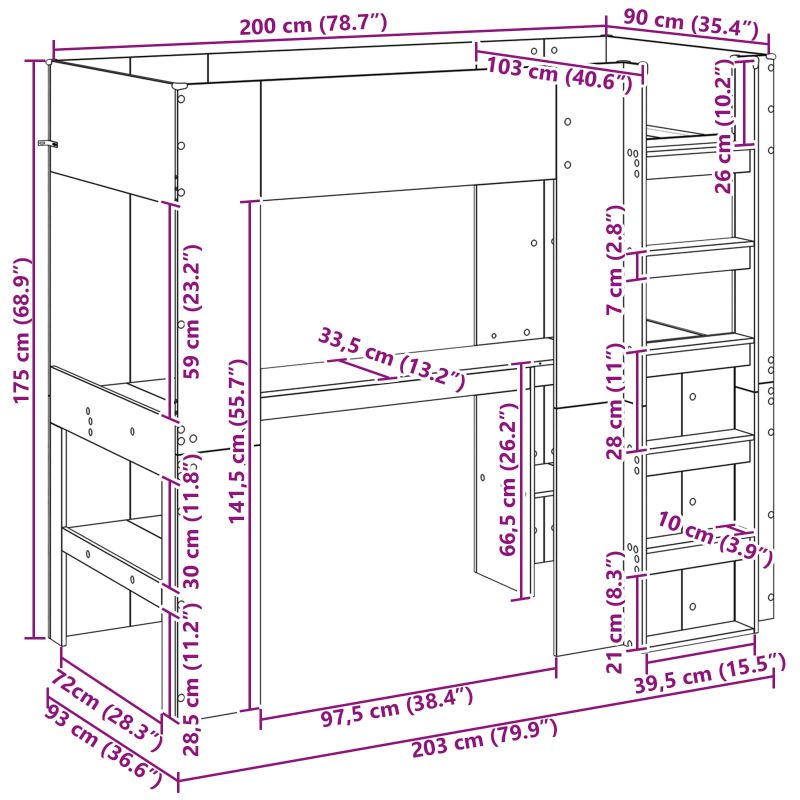 Рамка за двуетажно легло с бюро Сив Сонома 90 x 200 cm