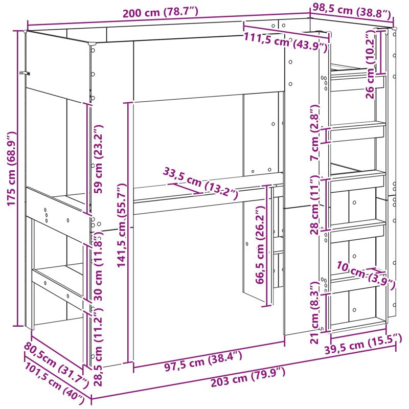 Модерната рамка за двуетажно легло с бюро е страхотно решение за спестяване на пространство, комбиниращо функционалност с модерен стил за всяка спалня. Тази двустранна рамка има прост и изчистен вид, перфектна за студенти или малки стаи. Тя разполагаше с бюро за учене или работа, комбинирайки сън и продуктивност в един компакт. Материали: Тази рамка е направена от инженерна дървесина, която е избрана за своята здравина и гладка обработка, което я прави визия и удобна за ползване. Инженерната дървесина добавя стабилност и дълготрайност, така че да устои на натоварени домакинства и да запази качеството си след години.