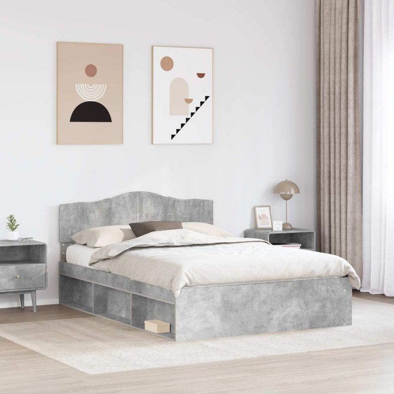 Рамка за легло Бетон 140 x 190 cm Солидно борово дърво