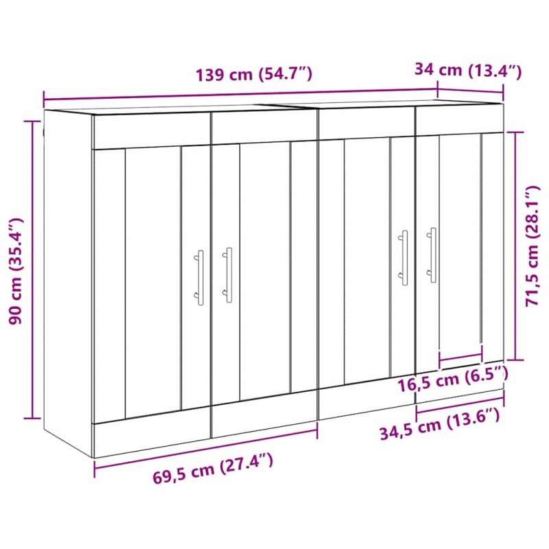 Стенно монтиран шкаф 2 pcs Черния дъб 69,5 x 34 x 90 см