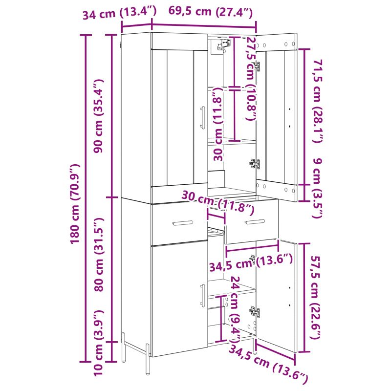 Висок шкаф Черния дъб 69,5 x 34 x 180 см Инженерно дърво