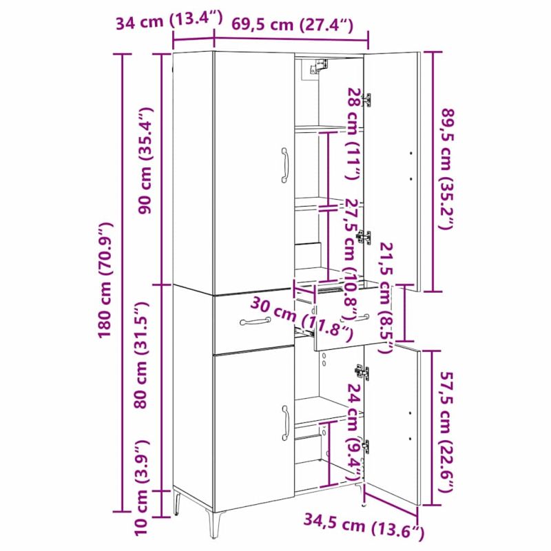 Висок шкаф Черния дъб 69,5 x 34 x 180 см Инженерно дърво