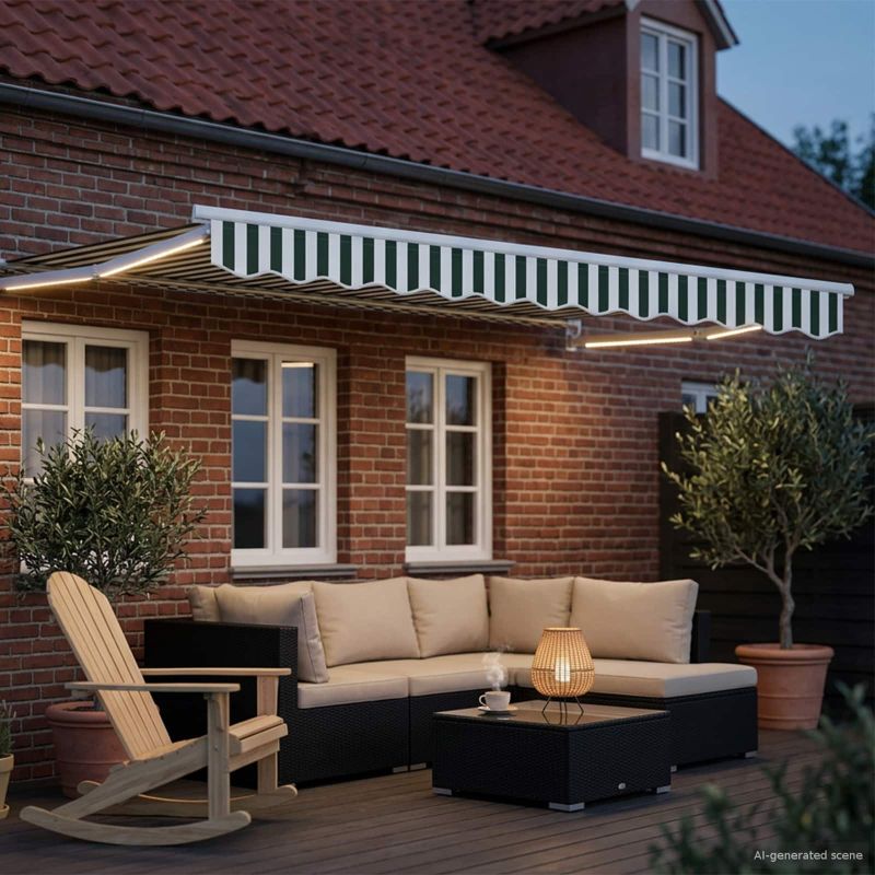 Ръчен изтеглящ сенник с LED светлини Зелен и бял 3,5 x 2 m