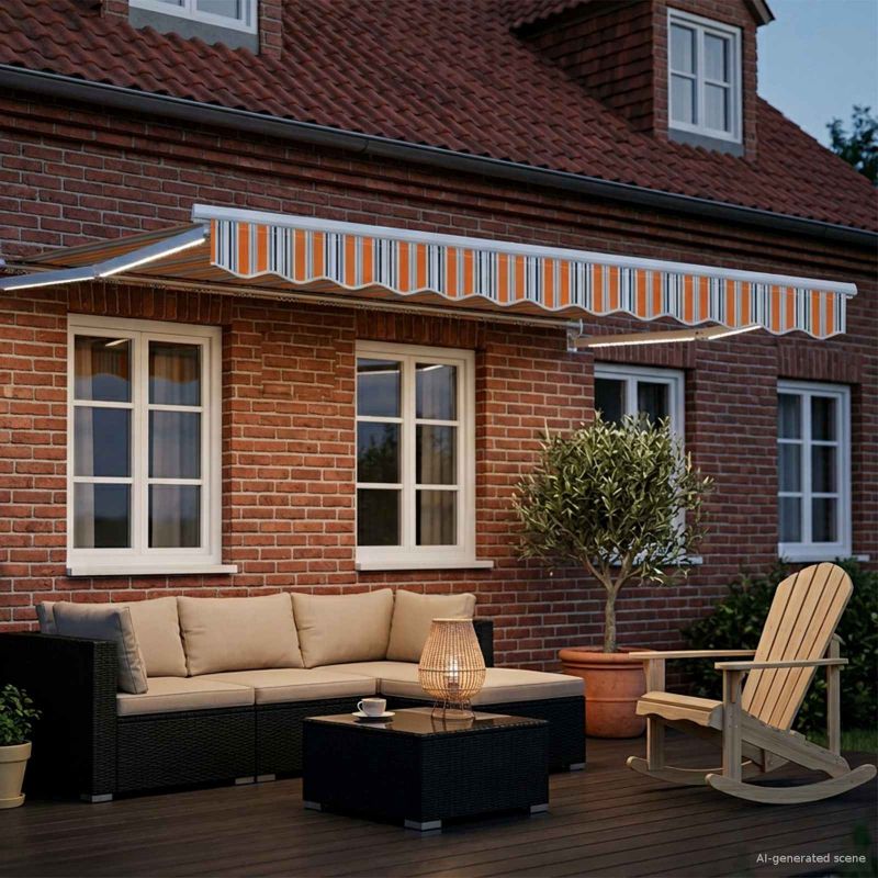 Този ръчен сенник с LED светлини на соларни батерии прави сянка и осветление за тераси, градини и всякакви открити пространства. Може да го нагласите както искате, а соларните LED светлини осветяват всичко вечер, без нужда от контакти. Водоустойчив плат: Изработен е от полиестер с ПУ покритие, за да е устойчив на слънчевата светлина и дъжда. Идеален за често ползване навън! Здрава рамка: Рамката е стоманена и алуминиева, което ѝ дава стабилност, а материалите са устойчиви на корозия. Качеството на конструкцията е на високо ниво! Ръчно управление: Сенникът идва с ръчна дръжка за разтягане и прибирате на сенника, позволявайки ви да регулирате сянката според слънцето. Соларно LED осветление: Има соларни LED лампи, които зареждат през деня за осветление вечер, без нужда от допълнителни захранващи устройства. Инсталационни компоненти: Включен е всичко нужно за поставянето. Следвайте инструкциите и ще го монтирате бързо и сигурно.