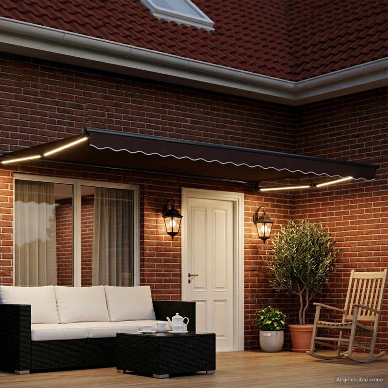 Ръчен изтеглящ сенник с LED светлини Кафяво и антрацит 4 x 2 m