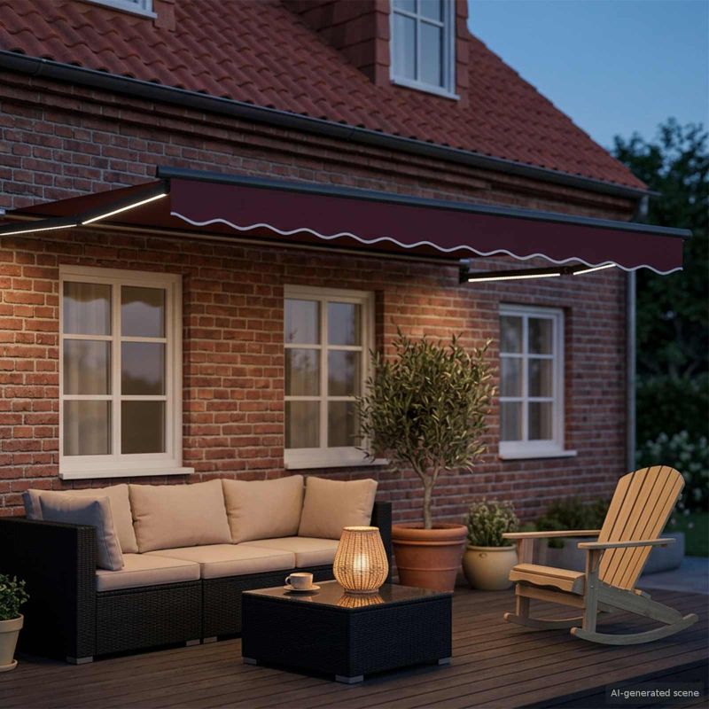 Този електрически сенник с LED и метеорологичен сензор е елегантно и функционално решение за сянка на открито. С чисти линии и минималистичен дизайн, той естествено подобрява външните пространства и осигурява стилно укритие от времето. Идеален е за верандите, създава комфортна атмосфера при всякакви условия и е перфектен за онези, които търсят без усилие и напреднал функционален стил. Качествени алуминиеви рамки Изработен от висококачествен алуминий, предлагащ здравина и дълготрайност. Блестящото му метално покритие добавя елегантност към целия дизайн. Сензор за време Вграденият сензор автоматично прибира сенника при силния вятър, за да предотврати повреда. Тази функция ви дава спокойствие, дори когато не сте наоколо. Интегрирано LED осветление Той разполага с LED светлини, които осигуряват перфектната обстановка вечер, идеално за събирания или просто за релаксация. Модерен минималистичен дизайн Простият и функционален дизайн на сенника прекрасно се вписва в различни архитектурни стилове, добавяйки стил и елегантност. Лесни инструкции за грижа Просто избършете сенника с влажна кърпа, за да поддържате свежия му вид. Минималната поддръжка гарантира, че той остава основен елемент във вашето открито пространство.