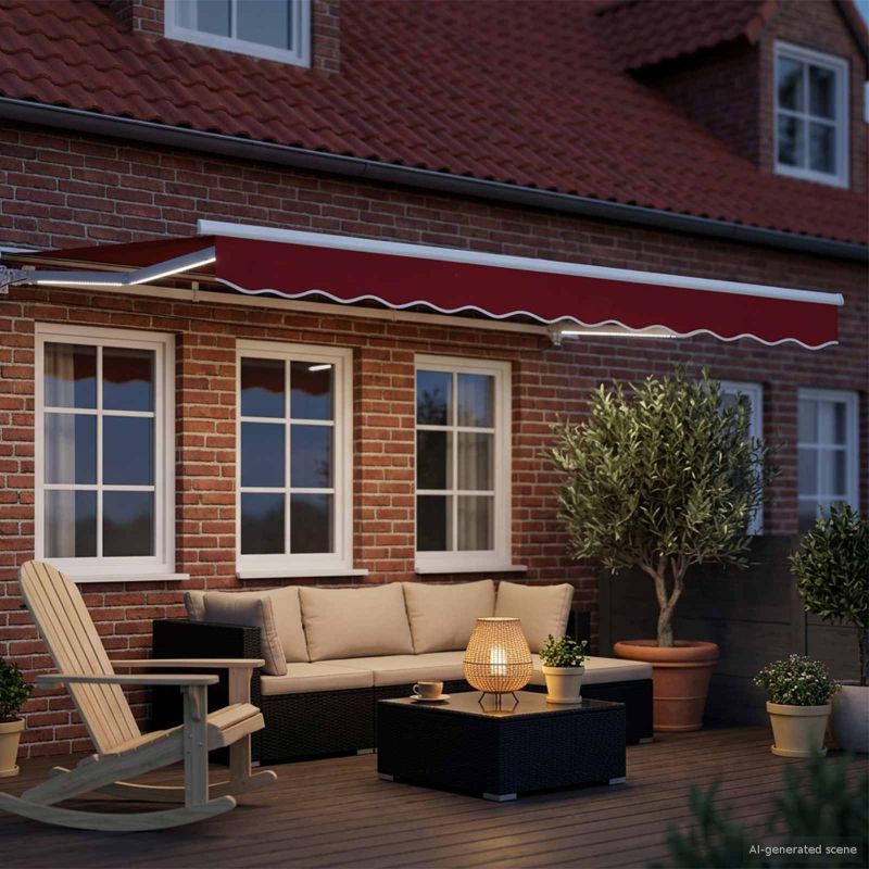 Този супер готин електрически подвижен сенник е точно това, от което се нуждае твоето открито пространство! Осигурява регулируема сянка и е перфектен за всяка градина или тераса, комбинирайки стил и функция. Представи си да си на спокойна места и да се наслаждаваш на природата, защитен от силното слънце. Сенникът се закрепва красиво на стената, като не заема много място, а предлага голямо покритие. Устойчив материал: Изработен от полиестер с PU покритие, материалът на сенника е супер здрав и подходящ за всякакво време през годината. Освен, че е як, цветът му не избледнява и твоето открито пространство изглежда отлично винаги. Лесна работа: Сенникът идва с дистанционно и ръчна дръжка, което го прави супер готин за управление. Бързо можеш да сменяш сянката или да настроиш всичко за забавления с приятели. Стабилна рамка: Здравата рамка от прахово боядисана стомана и алуминий осигурява дълговечност – ултра стабилна! Праховото покритие я защитава от износване, така че всичко работи гладко. Лесен монтаж: Стенният монтаж е лесен с предоставените компоненти. Настройването е супер бързо и просто, а включените инструкции правят всичко още по-лесно! Практичен дизайн: Полу-касетният дизайн е не само готин, а и много удобен; скрива механизма, а същевременно предлага стегната и линейна защита. Сенникът плътно лежи на стената на сградата, оптимизирайки пространството навън и е много ефективен при защита от времето.