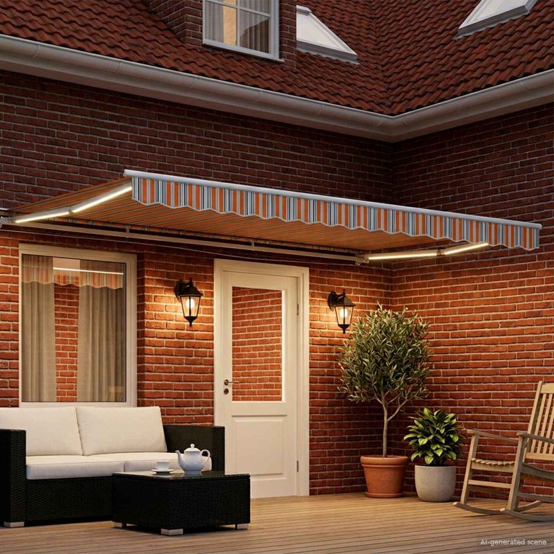 Електрически разтегателен навес Синьо, Оранжево, Бяло 4 × 3 m
