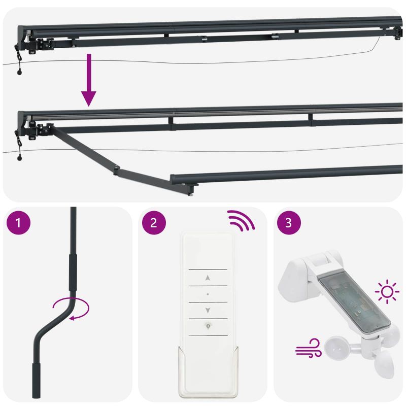 Този супер готин електрически подвижен сенник е точно това, от което се нуждае твоето открито пространство! Осигурява регулируема сянка и е перфектен за всяка градина или тераса, комбинирайки стил и функция. Представи си да си на спокойна места и да се наслаждаваш на природата, защитен от силното слънце. Сенникът се закрепва красиво на стената, като не заема много място, а предлага голямо покритие. Устойчив материал: Изработен от полиестер с PU покритие, материалът на сенника е супер здрав и подходящ за всякакво време през годината. Освен, че е як, цветът му не избледнява и твоето открито пространство изглежда отлично винаги. Лесна работа: Сенникът идва с дистанционно и ръчна дръжка, което го прави супер готин за управление. Бързо можеш да сменяш сянката или да настроиш всичко за забавления с приятели. Стабилна рамка: Здравата рамка от прахово боядисана стомана и алуминий осигурява дълговечност – ултра стабилна! Праховото покритие я защитава от износване, така че всичко работи гладко. Лесен монтаж: Стенният монтаж е лесен с предоставените компоненти. Настройването е супер бързо и просто, а включените инструкции правят всичко още по-лесно! Практичен дизайн: Полу-касетният дизайн е не само готин, а и много удобен; скрива механизма, а същевременно предлага стегната и линейна защита. Сенникът плътно лежи на стената на сградата, оптимизирайки пространството навън и е много ефективен при защита от времето.