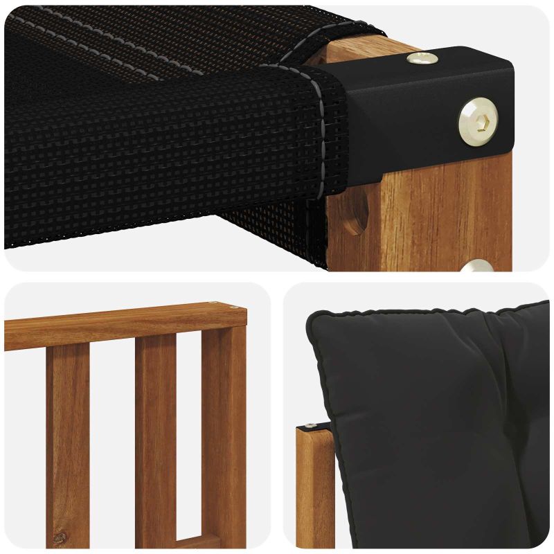 Комплектът мебели за открито е стилен и практичен, прави страхотен акцент за всяка градина или тераса. С модерен дизайн, отличаващ се с чисти линии и минимализъм, той внася елегантност и същевременно осигурява удобно място за отдих и събирания. Направен е от качествено акациево дърво, което гарантира дълготрайност и страхотен външен вид, точно каквото ти трябва, ако търсиш нещо слава и стил на твоите открито мебели. Издръжливо акациево дърво: Направен от здраво акациево дърво, този комплект мебели за външно ползване е известен с дълготрайността си. Здравата конструкция предлага надеждна опора и дълготрайно стягане, а топлият естествен цвят добавя стил на градината или терасата. Устойчиво на времето покритие: Лаковото покритие на този комплект мебели осигурява защита от слънце и дъжд. То помага да се запази визията и функционалността му, така че ще ти служи дълго време. Дизайн и компоненти: Всички части, от подлакътниците до опорите, са проектирани с оглед на стил и функция. Подкрепящите частите дават допълнителен комфорт, а единният дизайн е визуално приятен, идеален за всякакви поводи на открито. Удобство и гъвкавост: Модулният дизайн дава възможност за настройка на различни конфигурации. Подходящ е за релакс, събирания или тихо четене, а лекият му вид ще се адаптира към всяка среда, максимизирайки комфорта и удобството. Лесна поддръжка: За да запазиш мебелите си в добро състояние, просто ги бършеш с влажна кърпа и избягваш остри чистители. Редовната грижа ще помогне да се запази външният вид и да удължи живота на мебелите.