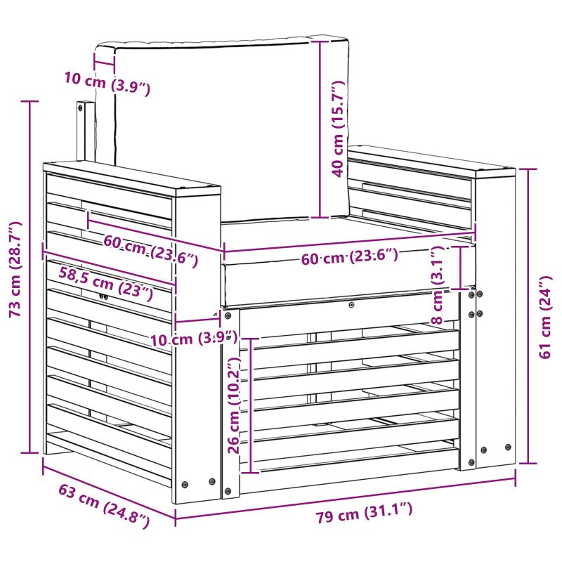 Комплектът за външно обзавеждане съчетава стил и практичност, създавайки впечатляващ център за всяка градина или тераса. Със своя модерен дизайн, чисти линии и минимални детайли, внася елегантност и насърчава откритото отпочиване и социализиране. Направен е изцяло от масивно акациево дърво, което гарантира дълготрайност и красив вид, перфектен избор за тези, които търсят функционалност и елегантност в градинското обзавеждане. Издръжлива масивна акациева дървесина: Комплектът, направен от масивно акациево дърво, е известен с дълготрайността и устойчивостта си на външни условия. Солидната конструкция осигурява надеждност и стабилност, а топлите естествени цветове пълнят всяка градина или тераса с уют. Устойчив на климатични условия: С лакирана повърхност, комплектът предлага допълнителна защита срещу слънце и дъжд. Полираното покритие помага да се запази добрият външен вид и функционалността, осигурявайки дълготрайност. Компоненти и дизайн: Всеки елемент, от подлакътниците до облегалките, е проектиран с оглед на стил и удобство. Поддържащите функции добавят комфорт, докато дизайнът осигурява визуално хармонична композиция, подходяща за всякакви външни настройки. Комфорт и многофункционалност: Модулният дизайн позволява гъвкави конфигурации, които да отговарят на различни пространства и нужди. Идеален е за релакс, социални срещи или тихо четене, комплектът лесно се адаптира към всяка външна среда, увеличавайки комфорта. Лесна поддръжка: За да запазите мебелите в добро състояние, избърсвайте повърхността с влажна кърпа и избягвайте агресивни почистващи средства. Редовната грижа помага да се поддържа добрия вид и удължава живота на мебелите.