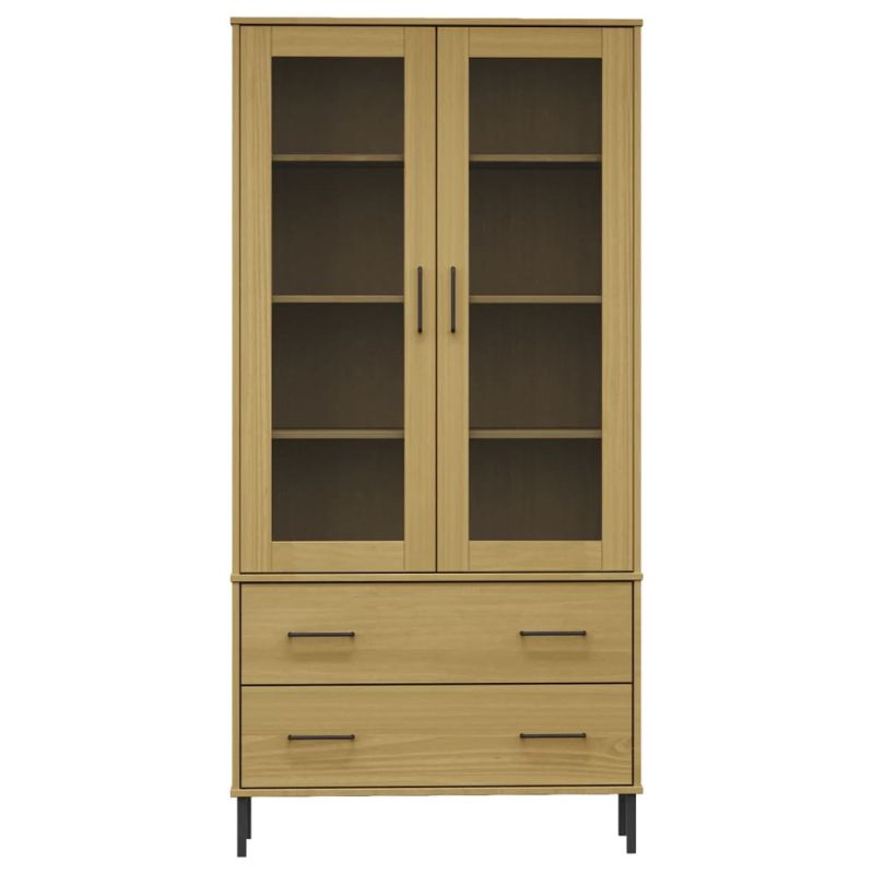 Библиотека метални крака кафява 85x35x172,5 см дърво масив OSLO