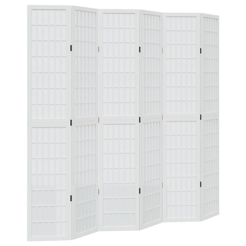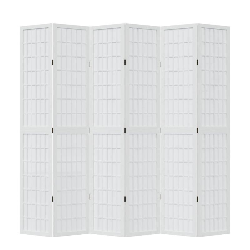Разделител за стая, 6 панела, бял, дърво пауловния масив
