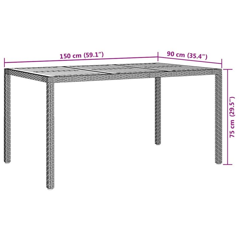 Градинска маса Черно 150 x 90 x 75 cm полиратан