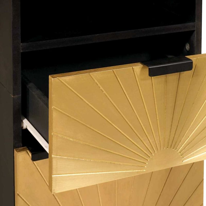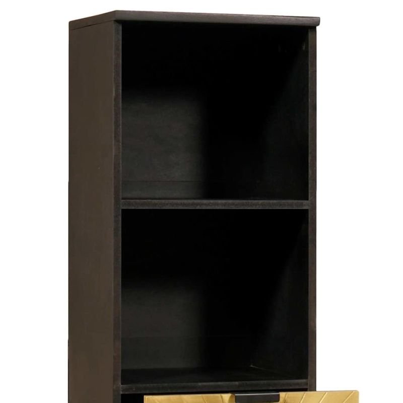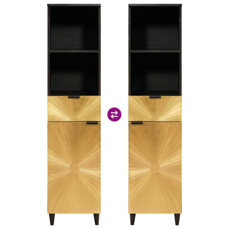 Шкаф за баня с чекмедже с рафт Черен и златен 38 x 33 x 160 см