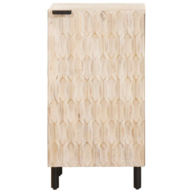 Този модерен страничен шкаф съчетава стил и практичност с лесен дизайн и много пространство за съхранение. Перфектен е за трапезарии или всекидневни. Солидна рамка от манго: Здраво изграждане, което ще издържи на времето. МДФ гръб: Прави шкафа да изглежда чист и подреден. Железни крака: Стабилна основа с модерен вид. Врати с панти и чашки: Лесен достъп и стилна визия. Лесна сглобяемост: Просто сглобяване с ясни инструкции.