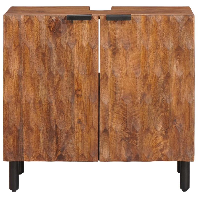 Шкаф за мивка в баня с рафт с врата Кафяво 62 x 33 x 58 см
